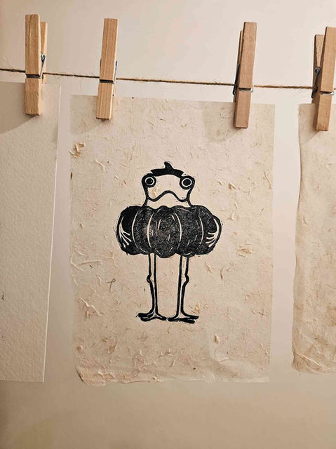 'Pumpkin frog' lino print